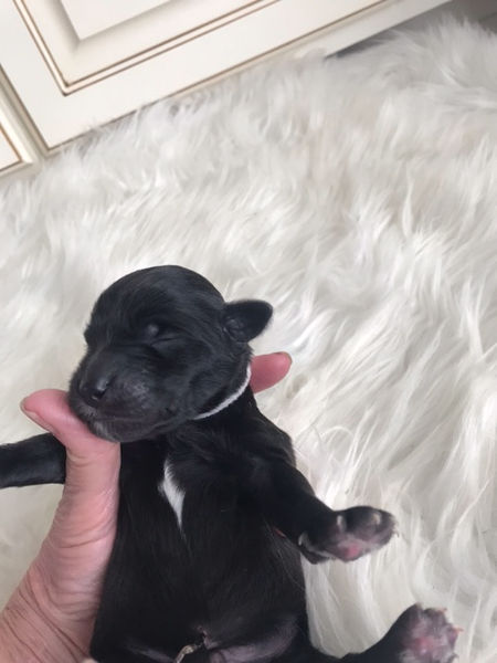 Cierra is an AKC registered Standard Poodle with partli coloring. Her parents were both bred for show and her sire actually competed. Cierra has undergone DNA/genetic testing and is health cleared. She's one of the smartest dogs we've ever met, weighs approx. 48lbs, loves her people and is very social.
